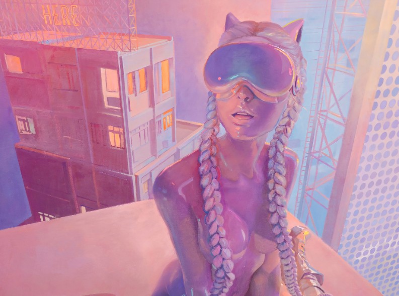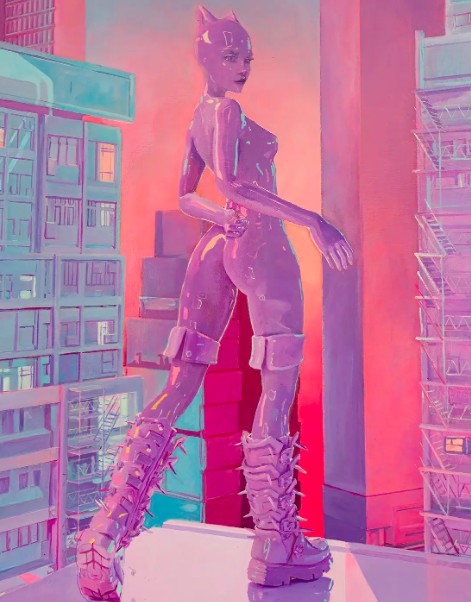 Her creative workflow is increasingly hybrid: she begins with real-world rooftop photography—poses that evoke feminine strength through physical extremity—and then channels these images into her NFT-based collections, such as Freedom in the Sky (2022). In this realm, she translates vertigo into digital artifacts, authenticated and traded on blockchain platforms. Her digital ecosystem further includes AI-enhanced paintings and avatar-driven pixels that reflect a post-human reinterpretation of identity. Rather than simply documenting her own form, she uses AI as collaborator, inviting algorithmic “imagination” to build on human experience—transformative yet deeply personal.