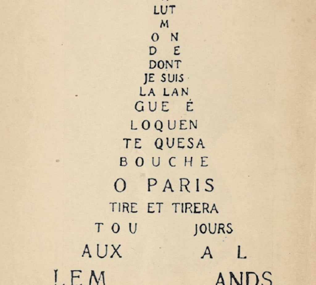 In 1897, Stéphane Mallarmé published Un coup de dés jamais n'abolira le hasard (A Throw of the Dice Will Never Abolish Chance). This is not poetry to be read—it is poetry to be seen. "LE MAÎTRE" written large at the top, "le hasard" small at the bottom, "COMME SI" floating at the center. Between the words: empty space.