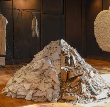 Curatorially, Fortunato D’Amico arranges the museum’s rooms to enact a micro-ecology: room by room, the visitor moves from forest (the origin of fibre, the laboratory of growth and sequestration) to the glacial field (vulnerability and protection) and finally to the atelier and archive where circular futures are imagined. This sequencing is not rhetorical ornament; it is a pedagogic device. By staging science—photographic studies of ice, documentation of pilot outcomes—and placing them alongside Pistoletto’s emblematic sculptural lexicon (the apple-as-mend, trunks with inserted mirrors, participatory mirror works), the exhibition compels a different temporality. It asks us to persist in an attentiveness that institutions too often abandon: the patient work of translation between disciplines.